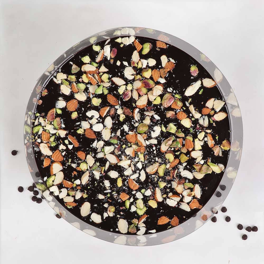 This chocolate cake is crafted with high-quality ingredients to ensure a memorable taste experience. The combination of the velvety chocolate, rich ganache, and crunchy nuts creates a truly irresistible dessert.